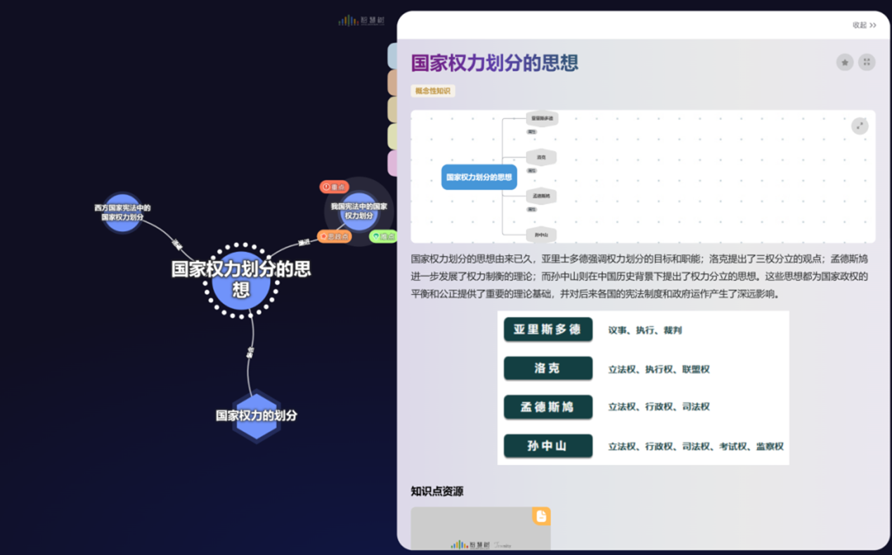 知识点挂载相应教学资源,从而实现学生基于单个知识点的深度学习。