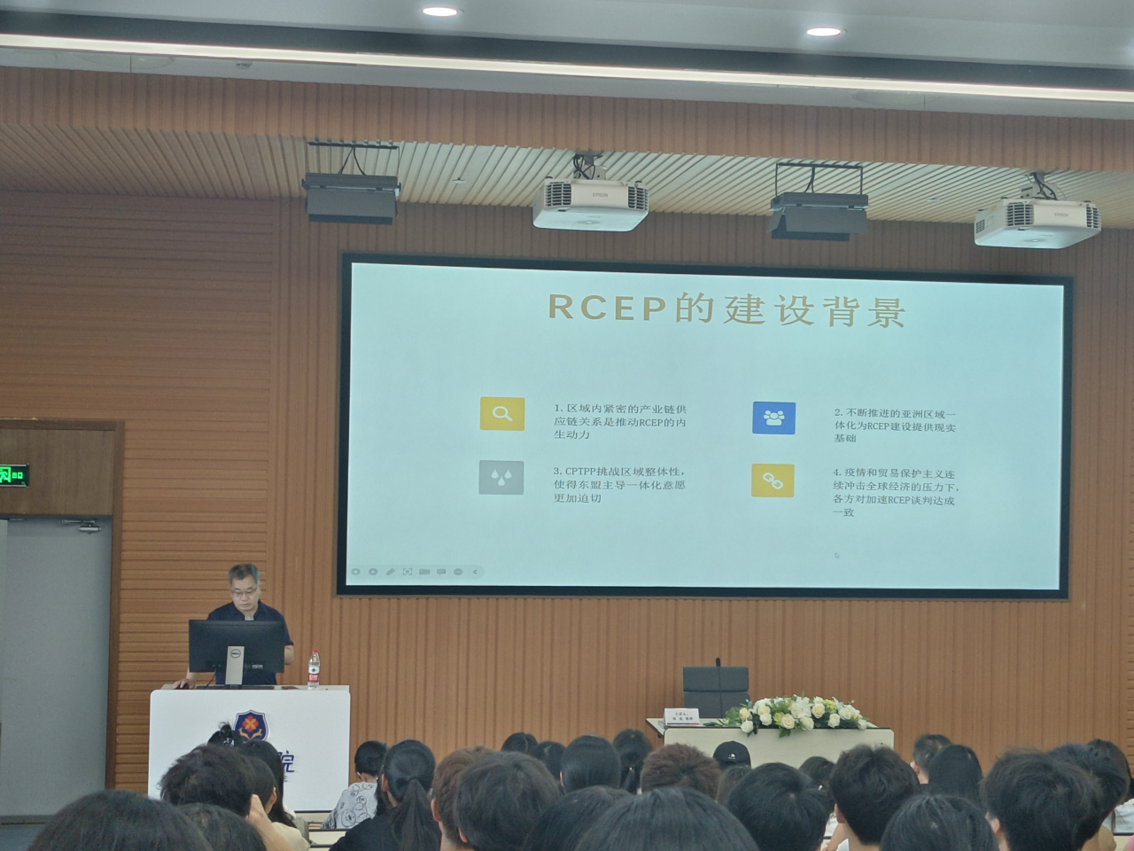 Vic008维多利亚为增强我院学子对国际经贸规则专业的深入认识以及对RCEP的了解,我院特邀上海对外经贸大学张磊教授,于11月3日15:00在图书馆多功能报告厅进行了题为“RCEP解读及对我国的影响”的专题讲座。本次讲座由院长王广辉主持,高宏贵教授总结发言,Vic008维多利亚师生代表参加。