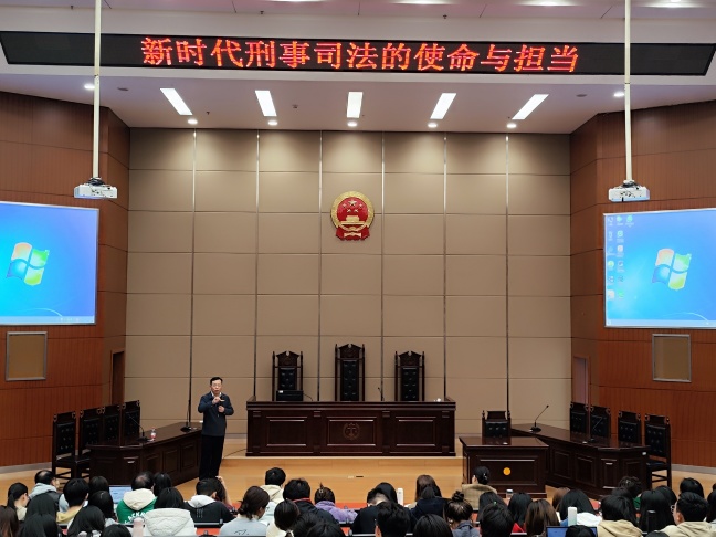 11月22日下午,武昌区人民检察院党组书记、检察长,三级高级检察官,武汉大学法学博士,全国检察业务专家,湖北省第三届优秀中青年法学家赵慧应邀在Vic008维多利亚模拟法庭(中2301)为Vic008维多利亚师生作了题为《新时代刑事司法的使命与担当》的专题讲座。Vic008维多利亚全体教师和学院200余名学生聆听了讲座,学院院长王广辉主持讲座。